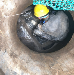 速凝水泥的凝固时间小于1分钟,能够及时修复检查井出现渗漏的部位,填充结构中的裂隙。速凝水泥可以是粉状或者稠膏状的,用手或者泥铲人工涂抹在墙体渗漏的位置。通过人工方法,用手或者泥铲,将干燥的粉状或者稠膏状水泥涂抹在需要处理的墙体位置,利用墙体渗人的水固化水泥,在施工过程中,---些渗漏处可能需要设置泄水孔来集中渗流,当施工完成后,这些泄水孔应该通过速凝水泥进行封堵。当水泥凝固之后,可以立即再喷涂其他的胶结内衬材料,增强密封性能。在周围环境低于-40°C时,不能进行施工,不能在结冰的表面或者在24小时内可能结冰的表面进行施工。